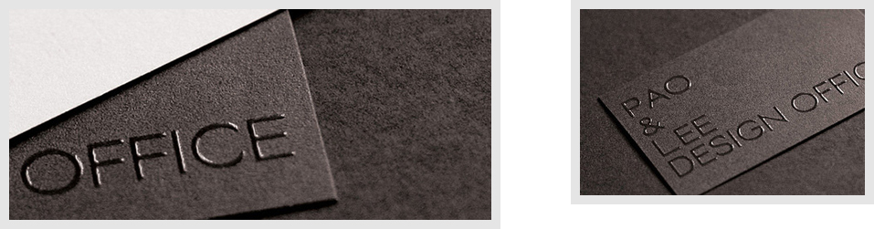 用質(zhì)地較硬的材料制成凹陷或隆起的中間版,通過(guò)凸版機(jī)械加工或凹陷或隆起的立體效果,使名片更具有視覺(jué)審美效果。通常有無(wú)色凹凸,印色凹凸等。